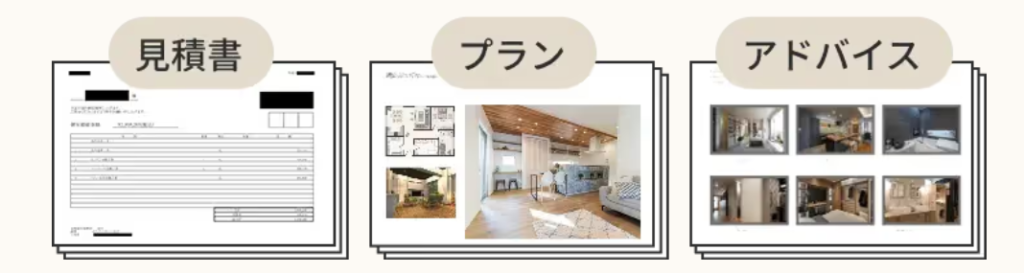 見積りだけじゃなく図面プランやアドバイスが無料でもらえます。